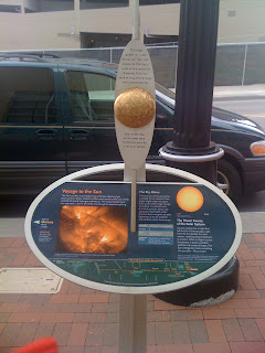 “Walk the Solar System” – Sun Stop. All stops had their “planet” displayed in ratio. Note the size of the sun. Earth was the size of a pinhead. (kinda’ appropriate).