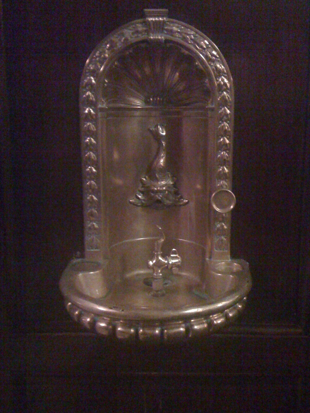 Which is why the Muehlebach was both sad and moving. Located in what I can only call the “basement” of the Kansas City Marriott Downtown, the remnants of the Muehlebach consist of a stunning lobby, a long concierge desk, and a closed speakeasy, all of which are in perfect condition. There is access from the street, but the stairwell from the Marriott lobby was small and almost hidden. There was no sign, but my friend Noah swore that the tiny stairwell lead to a tomb of treasures. Descending the worn, marble stairs, we were immediately transported to another time and place. My footsteps on the smooth marble floors echoed off the dark hardwood walls, stirring up visions of what hotel accommodations were like when men wore fedoras and Artie Shaw was on the radio. Although empty and buried beneath the modern, if rather bland-by-comparison, lobby of the Marriott, the Muehlebach is far from abandoned. Every light bulb is operational, the bookshelves in the reading area are packed and dust-free, and the artistic, brass water fountains are polished and operational. It’s a time capsule hoping to be rediscovered.