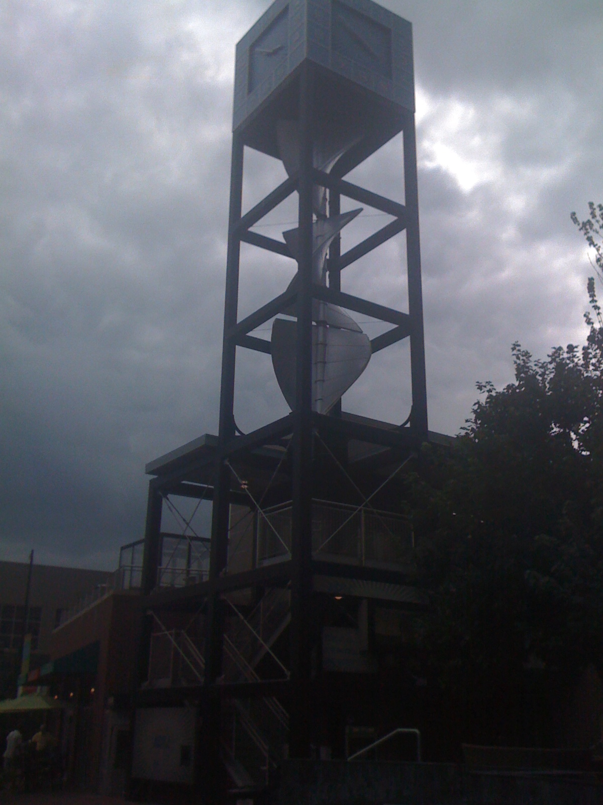 Wind Turbine and Clock in the Power and Light District area just outside the Sprint Center.