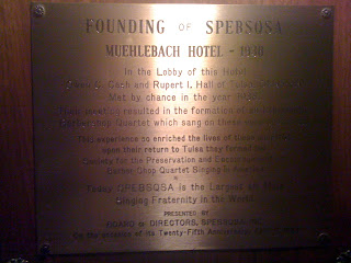SPEBSQSA plaque in the lobby of the Muehlebach.
